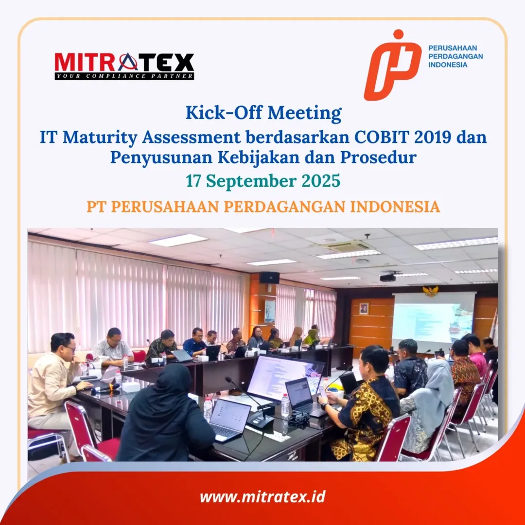 #PTMitratexKonsultan #Mitratex #ITMaturityAssessment #PPI #COBIT2019 #ITGovernance #TataKelolaTI #DigitalTransformation #ITPolicy #KebijakanTI #MaturityAssessment #ITConsulting #KickOffMeeting #GoodGovernance #IndonesiaDigital #COBITFramework